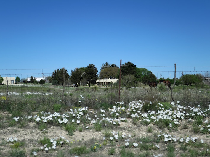 Early morning start (7 am! For me as a late riser… ts, ts. But too late to join the guided tour in the morning in Marfa), bringing Adrian’s son to school first and then heading towards Marfa in 3 hours. For me, a very exciting landscape: the Plains or/ and desert (not easy to differentiate), mountains, different kind of plants (again: not easy to tell: palm tree or cactus…) and as it is springtime: flowers everywhere. Did not expect that – from blooming little flowers by the wayside to cactus flowers in the desert. Uh, gosh, they just did not let me off the leash there … perhaps because of the snakes or the barbwire?