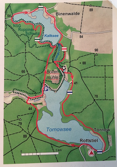 We started our tour heading first to the Peetschsee – the 1st view from the Augustablick has been so very attractive, I could not resist and had a re-fresh in the crystal clear water (the proof is my homepage portrait). Did not make the Menowsee, instead we made a shortcut to the Glietzensees. Wonderful all the way, neither too shadowy nor too sunny… and beautiful views. Last lake, the Großer Stechlinsee. For the lettered ones, Fontanes last novel takes place here, Der Stechlin, and perhaps someone is able to tell you the old legend that grows around the lake? And do not forget that Rheinsberg is not far away.