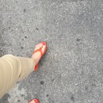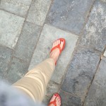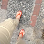 Well, for Almut it is her feet in her shoes on solid ground, for me only my paws. As she was walking through Athens with me I had the chance to take some remarkable pictures from my perspective. And I had lots of fun because she was not aware of my little camera… OK, the red nails in summer she always wears – not my cup of tea (my claws in red? Uh…); but with this special pair of orange shoes – gorgeous colour mix.