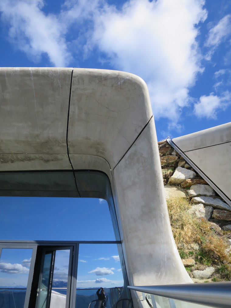 Kronplatz and MMM Corones is worth a hiking tour or – more comfortable – a cableway drive. Mountain bikers have different tracks so that you do not have to fear about being knocked down suddenly by them while hiking. The museum – a signature piece: Zaha Hadid architecture, clinged to the side of the summit plateau, built into the mountain as well as partly embedded into raised earth and stones. It has one of the most amazing and spectacular views onto the Alps. Named Ladin Corones (crown) to emphasize the fact of the trilingualism of the region. It is the last in the row of the six Messner Mountain Museums and no wonder it is a Messner temple… that it is a Zaha Hadid architecture seems to be not so very important…