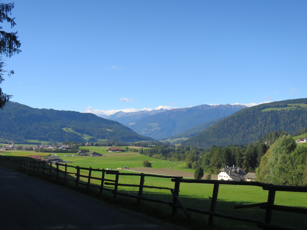 Drove southwards the direct way from Berlin by car, as soon as I reached Munich accompanied by heavy rain and strong wind, passed Innsbruck, took the Brenner freeway, the weather still misty and rainy. So missed some fantastic views like you have while driving the pass or from the Bridge of Europe. Italy welcomed me with clear, dry and sunny conditions. Of course, after 10 hours, a little bit exhausted… Found the hotel right in the center of Oberolang, across the ‘Messner Wirt’ (any connections to the famous Messner mountaineer family?).